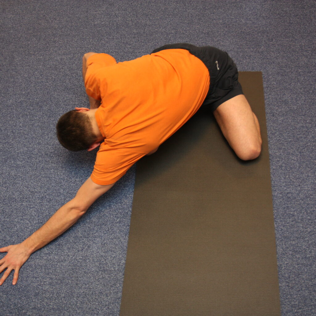 2. Zrób skłon do przodu i oprzyj ciało na podłodze.