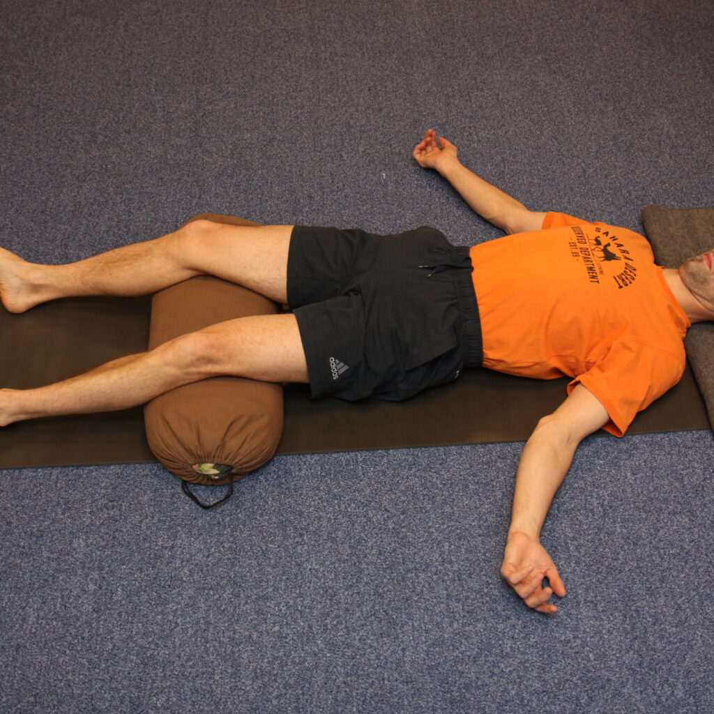 Śavasana z wałkiem pod kolanami, pozycja jogi