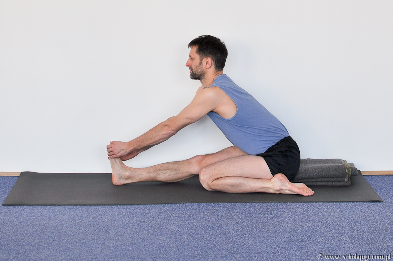 8. Podobnie jak w Pascimottanasanie istotą tej asany nie jest wykonanie jak najgłębszego skłonu lecz skłon z jednoczesnym intenstywnym wyciąganiem kręgosłupa.
